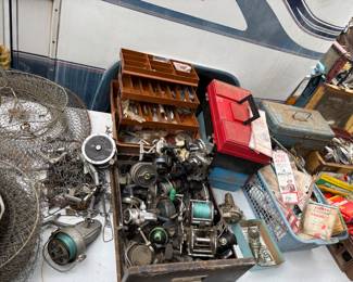 Fishing items: Reels like Abu Garcia Ambassador. Cannon Down Riggers. Hooks, tackle boxes and weights also available. Nets. Also various fishing poles.