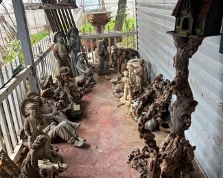 Vintage Concrete Statues involving fairies, kids playing sitting, religious ones, and assorted pillars and fountains.