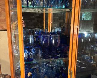 Glassware, utensils, pans, plates. Gibson, Tupperware, Vintage blue blown glass. China from England, Japan and Germany.