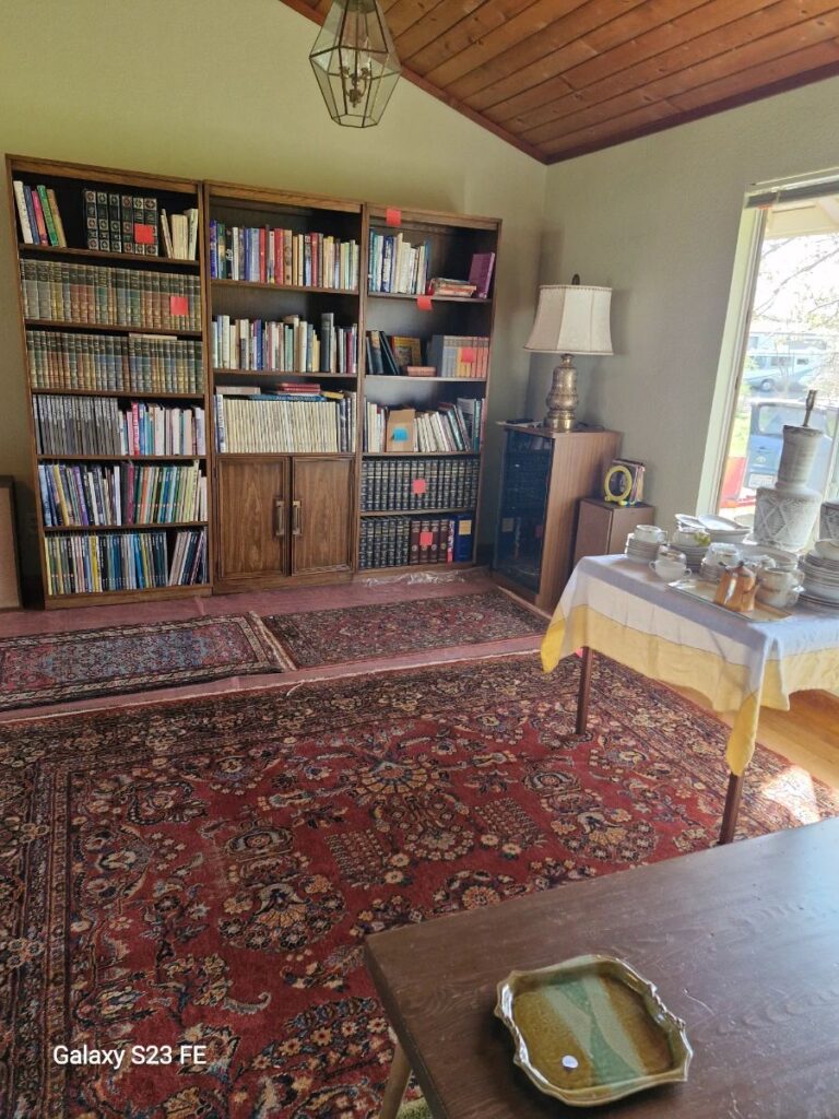 Glassware, china, furniture, books, clothing.